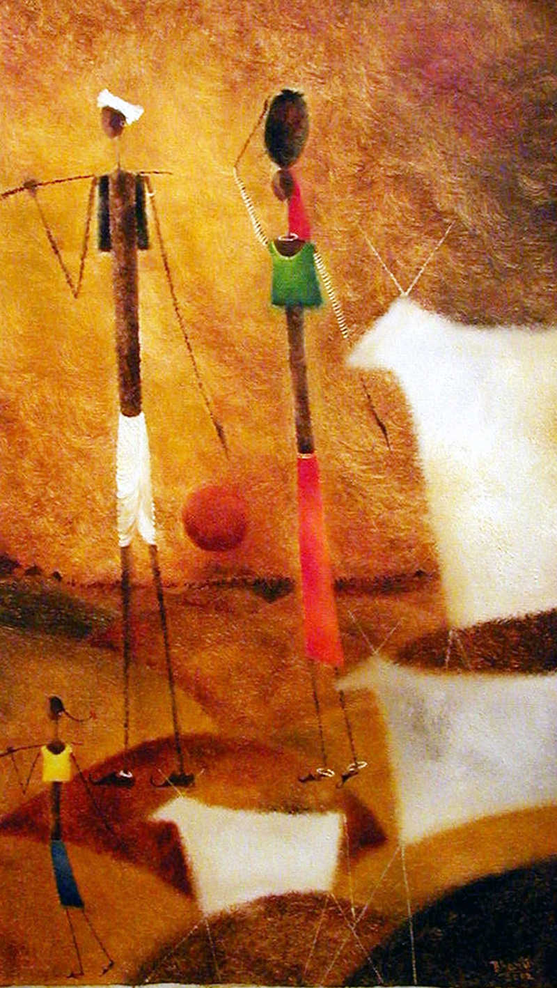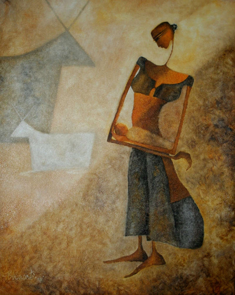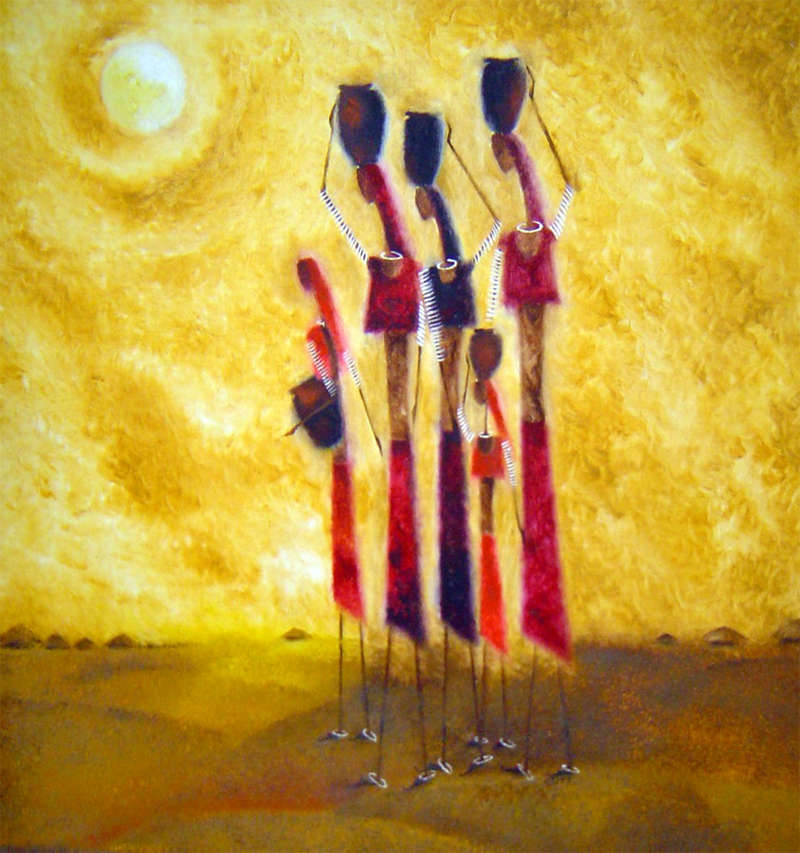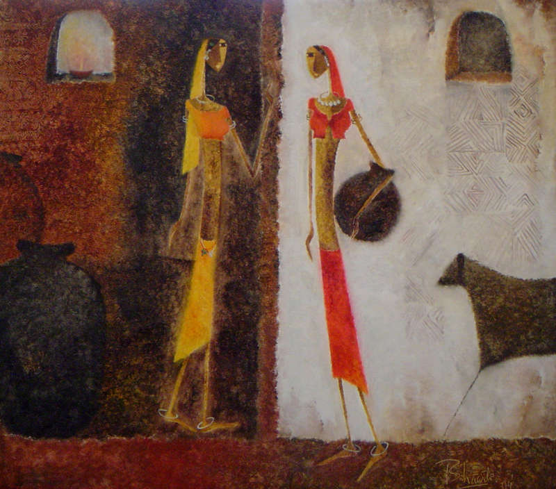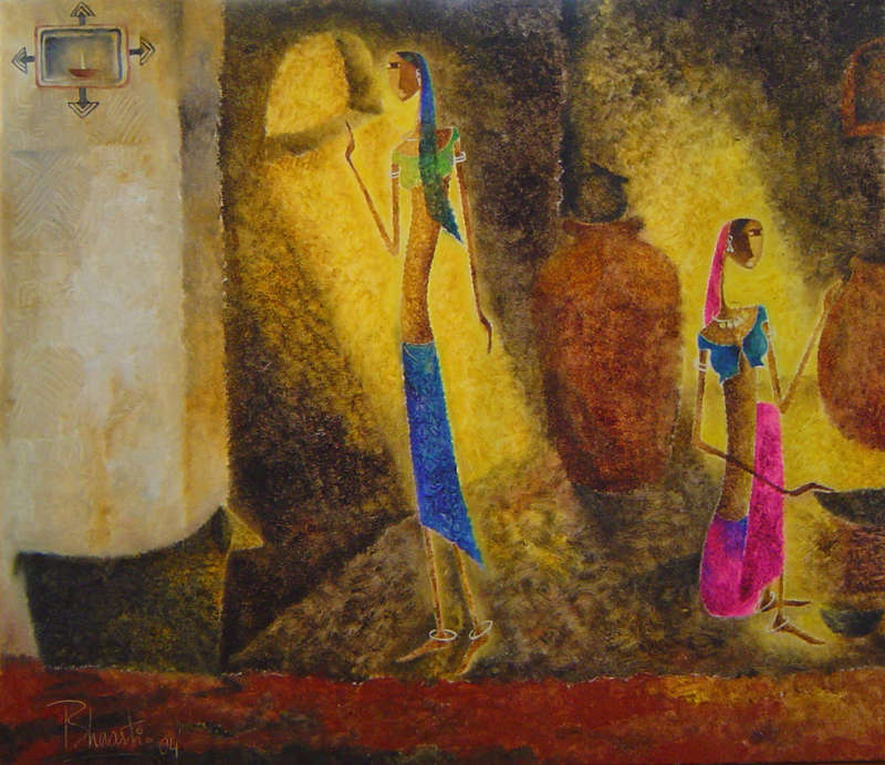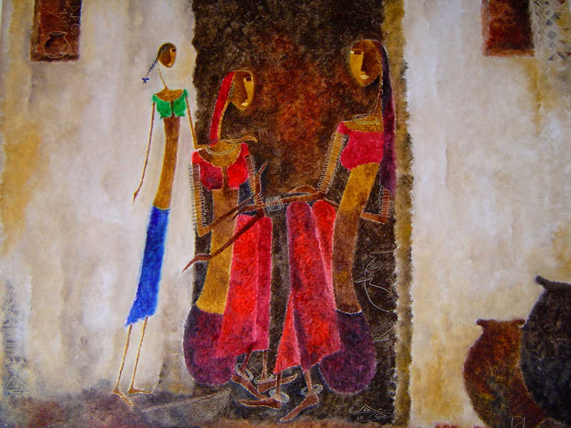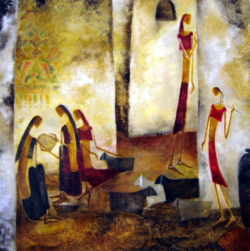 There is Creativity and beauty in every possible form, material, space, and lifestyle. The Desert series of paintings were my first attempt to capture these people in their element. The paintings portraying people, mud houses, cattle and life in general was almost an obsession in my initial painting phase.