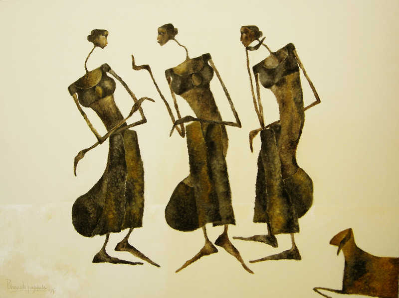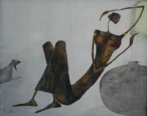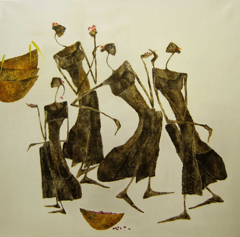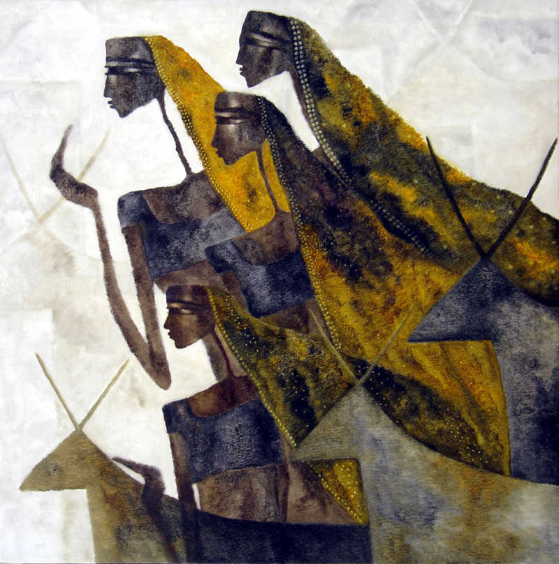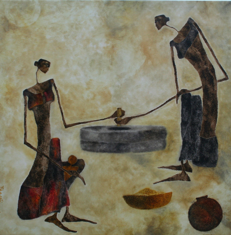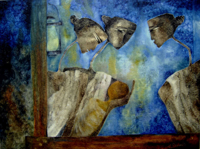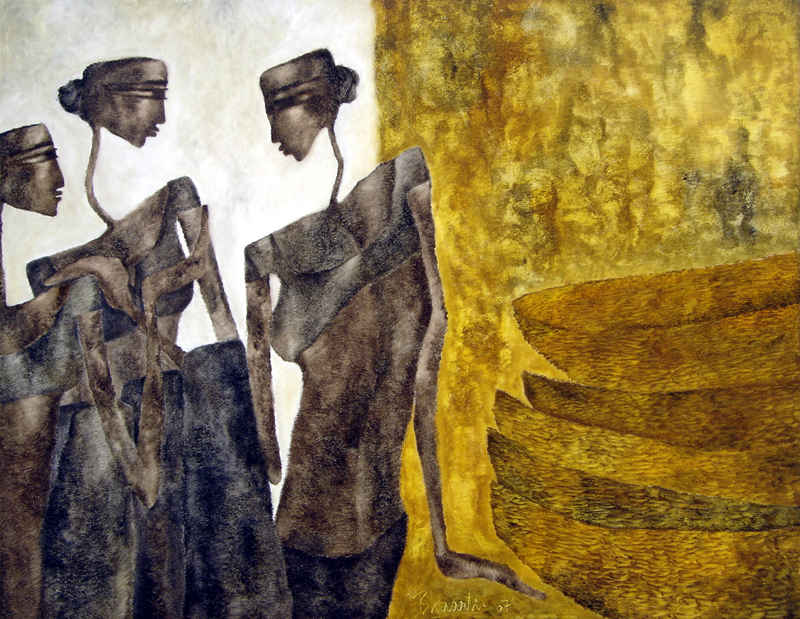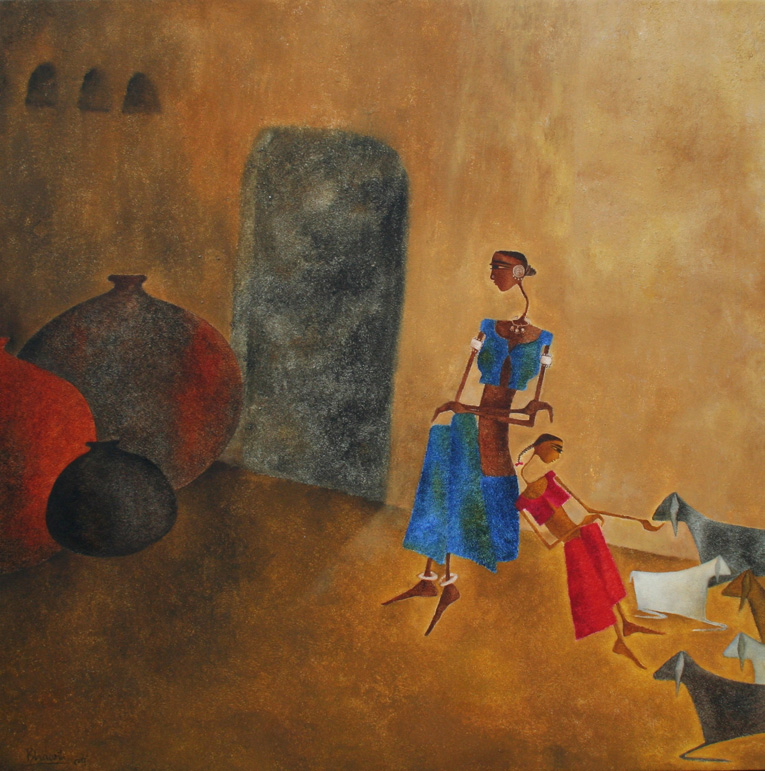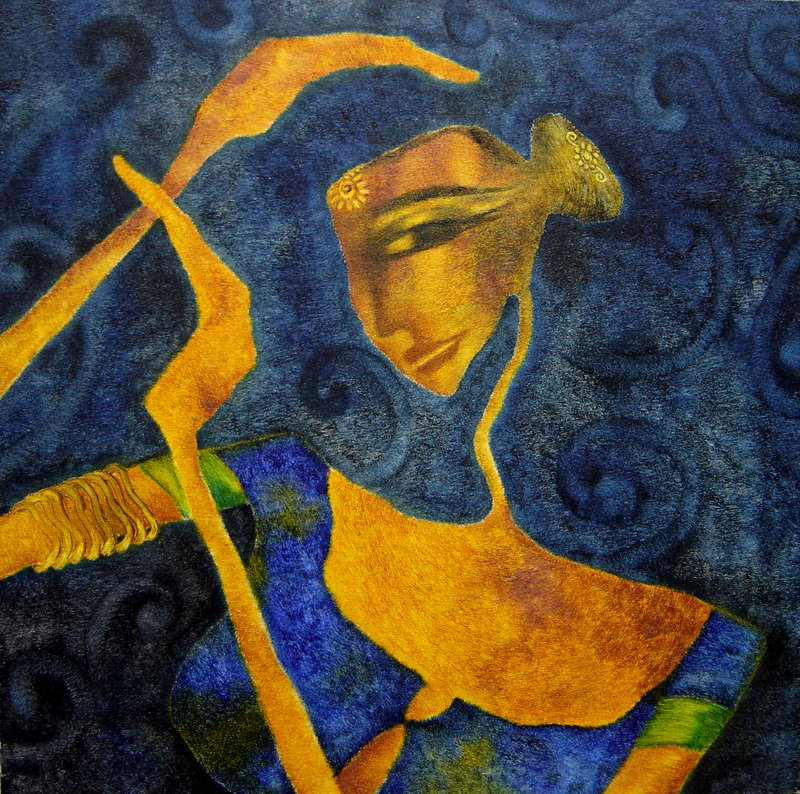 In my first series of paintings of the Goddess I would like to explore the world of woman and her various facets in context with the rural women who forms a very integral part of the Indian society.