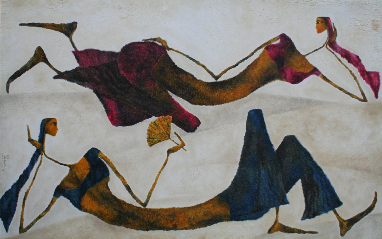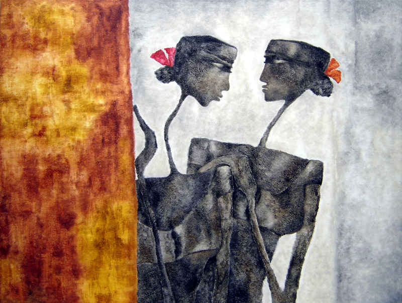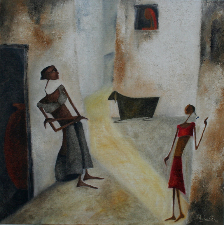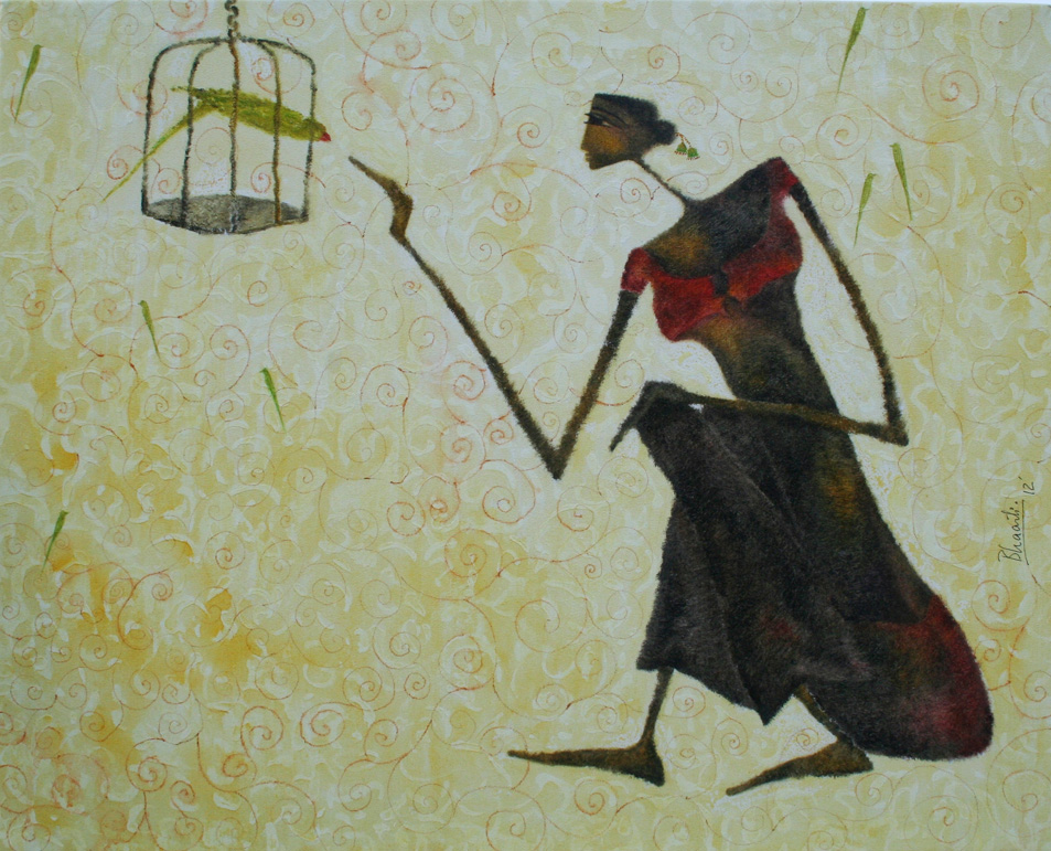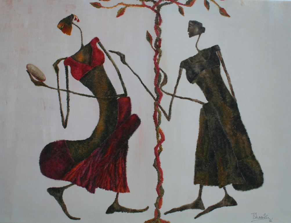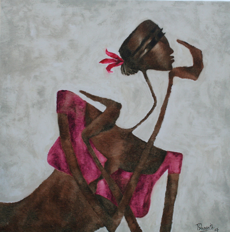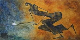 In my first series of paintings of the Goddess I would like to explore the world of woman and her various facets in context with the rural women who forms a very integral part of the Indian society.
